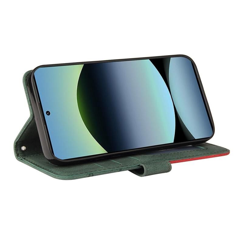 Θήκη τηλεφώνου από δέρμα με αναδιπλούμενο σχέδιο για Xiaomi Poco M6 Pro 4G Global, διχρωμίας (πράσινο)