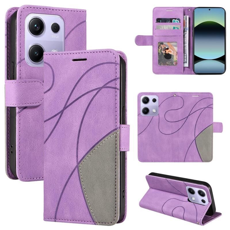 Θήκη τηλεφώνου από δέρμα με αναδιπλούμενο σχέδιο για Xiaomi Poco M6 Pro 4G Global, διχρωμίας (Μωβ)