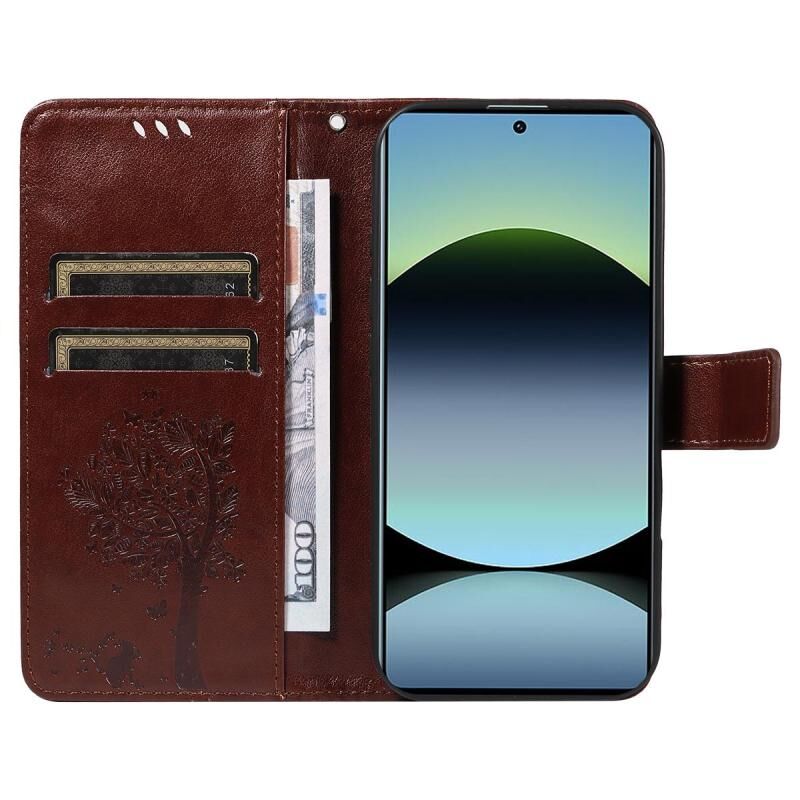 Θήκη τηλεφώνου από δέρμα με σχέδιο αναγλύφου δέντρου & γάτας για Xiaomi Poco M6 Pro 4G Global (Καφέ)