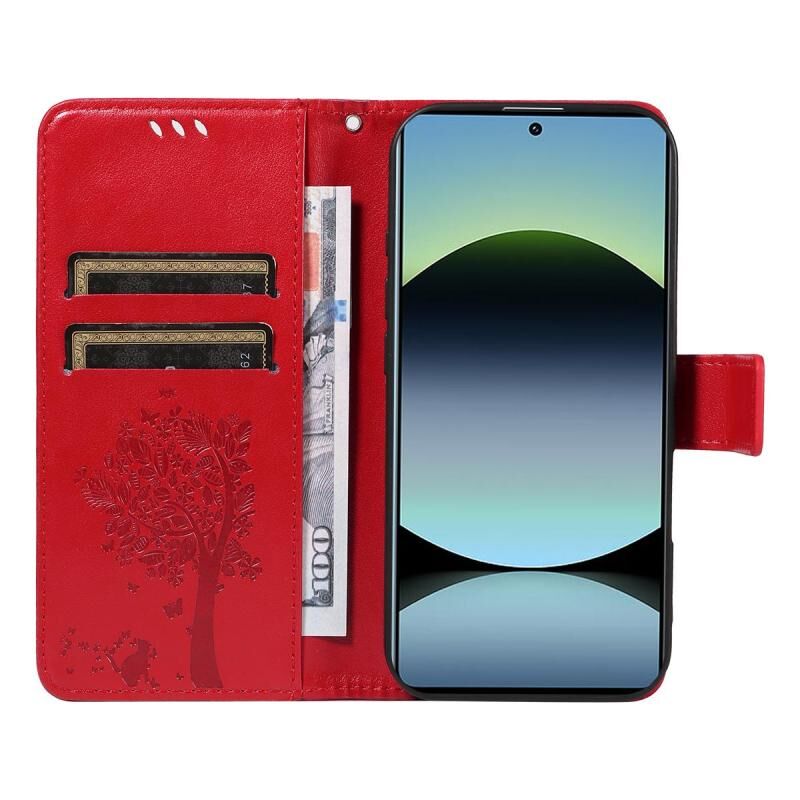 Θήκη τηλεφώνου από δέρμα με σχέδιο αναγλύφου δέντρου & γάτας για Xiaomi Poco M6 Pro 4G Global (Ροζ)