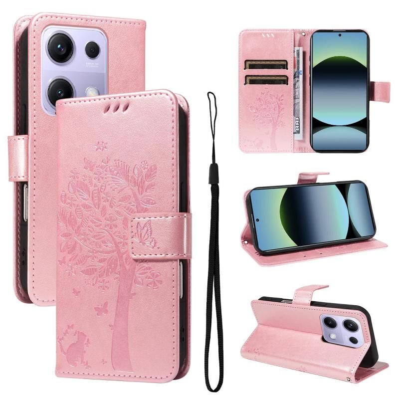 Θήκη τηλεφώνου από δέρμα με σχέδιο αναγλύφου δέντρου & γάτας για Xiaomi Poco M6 Pro 4G Global (Ροζ χρυσός)