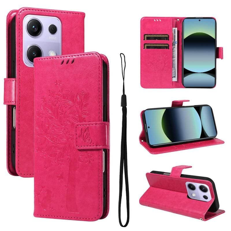 Θήκη τηλεφώνου από δέρμα με σχέδιο αναγλύφου δέντρου & γάτας για Xiaomi Poco M6 Pro 4G Global (Ροζ)