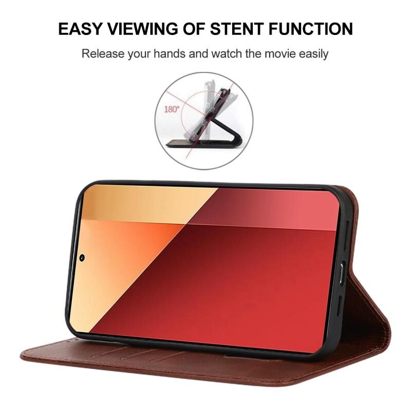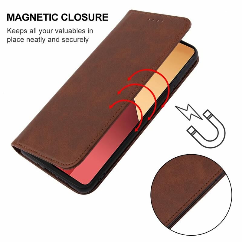 Για Xiaomi Poco M6 Pro 4G Μαγνητικό κλείσιμο δερμάτινη θήκη τηλεφώνου (καφέ)