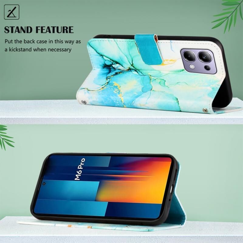 Θήκη τηλεφώνου από δέρμα με σχέδιο μάρμαρου για Xiaomi Poco M6 Pro 4G PT003 (Λευκό-Μωβ)