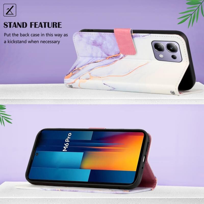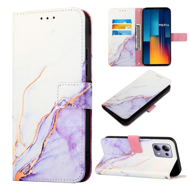 Θήκη τηλεφώνου από δέρμα με σχέδιο μάρμαρου για Xiaomi Poco M6 Pro 4G PT003 (Λευκό-Μωβ)