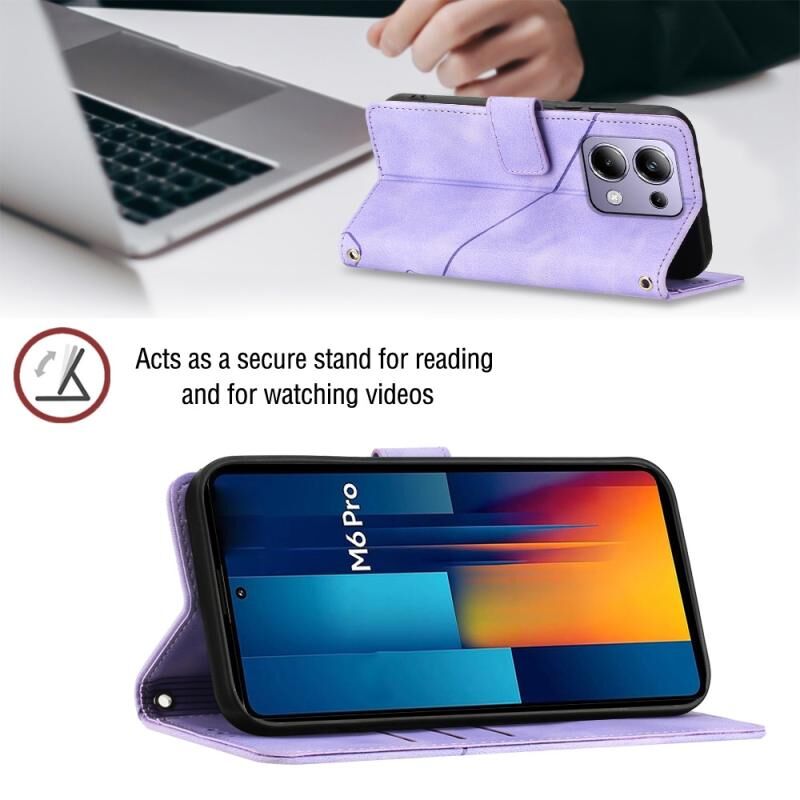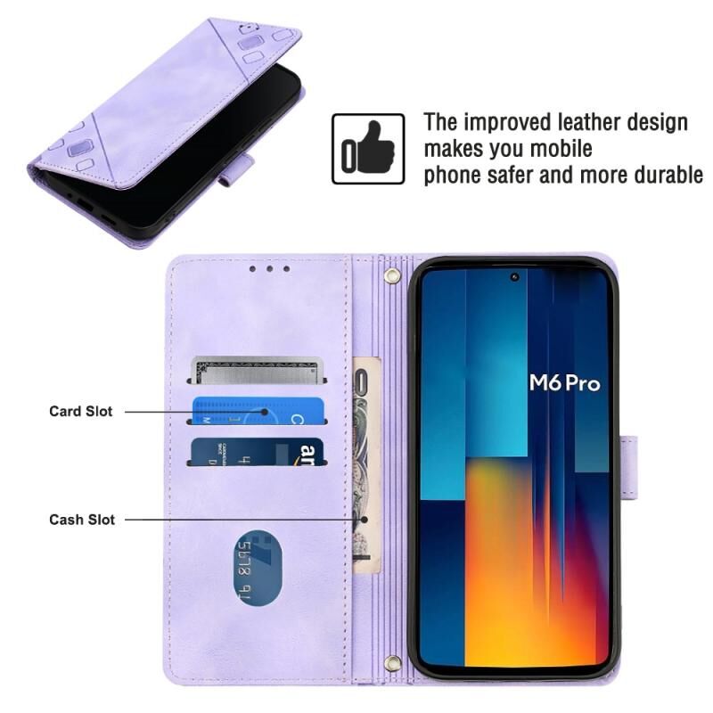 Θήκη τηλεφώνου από δέρμα με ανάγλυφη υφή για Xiaomi Poco M6 Pro 4G (Ανοιχτό Μωβ)