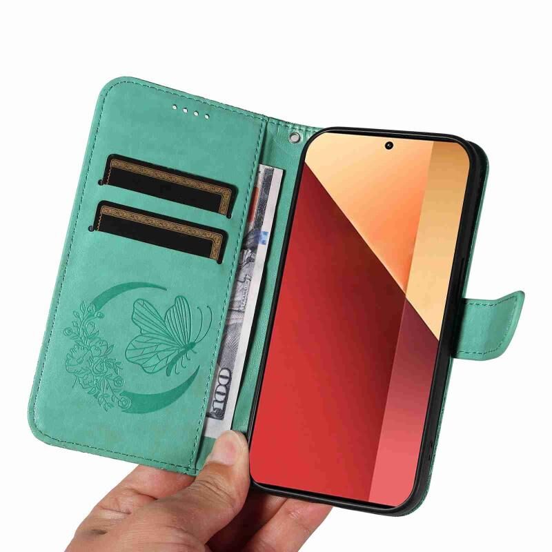 Θήκη τηλεφώνου δερμάτινη με ανάγλυφο σχέδιο πεταλούδας για Xiaomi Poco M6 Pro 4G (Μπλε)