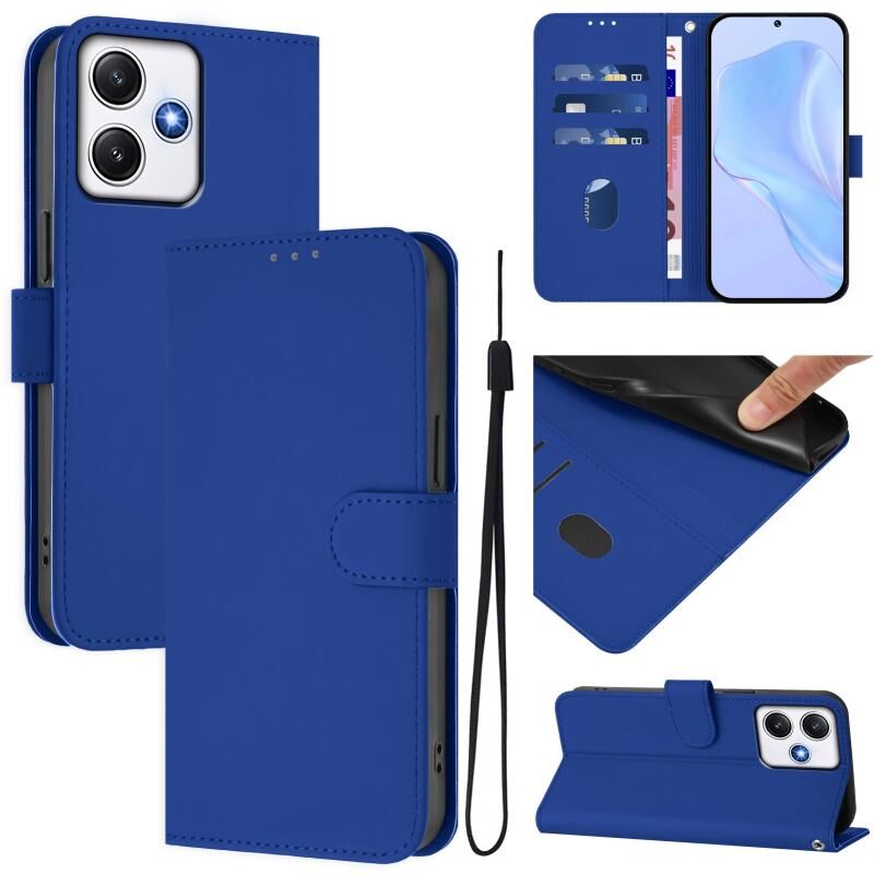 Θήκη τηλεφώνου Xiaomi Poco M6 Pro 5G με αίσθηση δέρματος, μονόχρωμη, από δέρμα με κορδόνι (Σκούρο Μπλε)