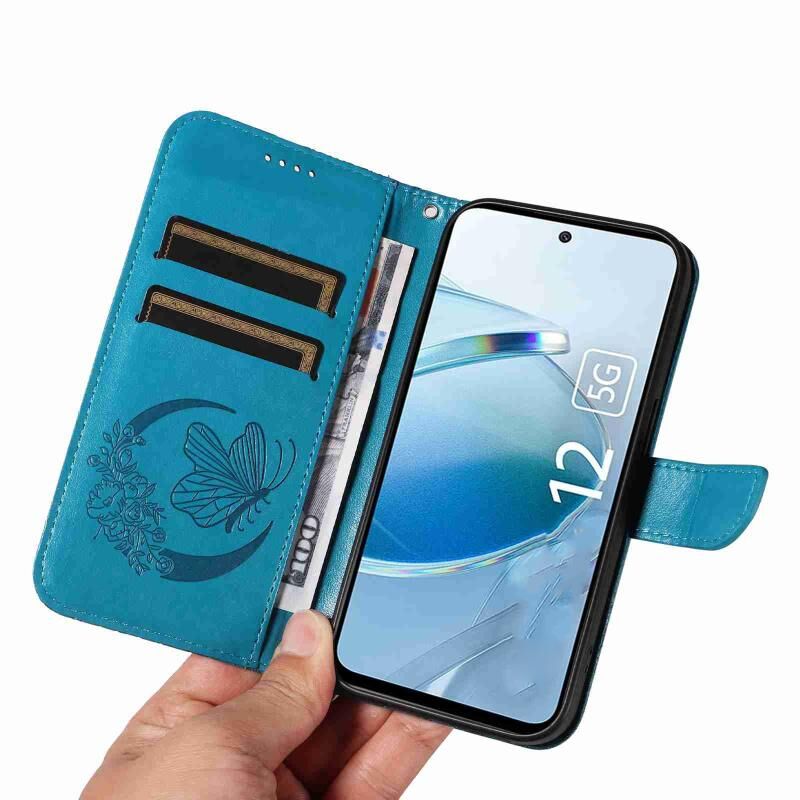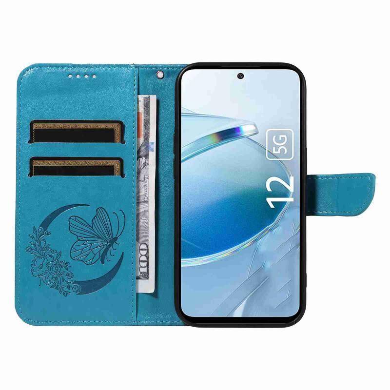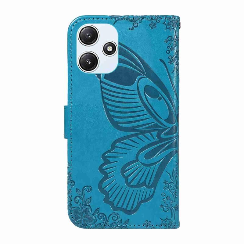 Θήκη τηλεφώνου από δέρμα με ανάγλυφο σχέδιο πεταλούδας Swallowtail για Xiaomi Poco M6 Pro 5G (Μπλε)