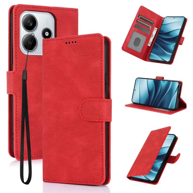 Για το Xiaomi Poco M7 Pro 5G Fantasy Skin-feel Calfskin Texture Leather Phone Case (κόκκινο)