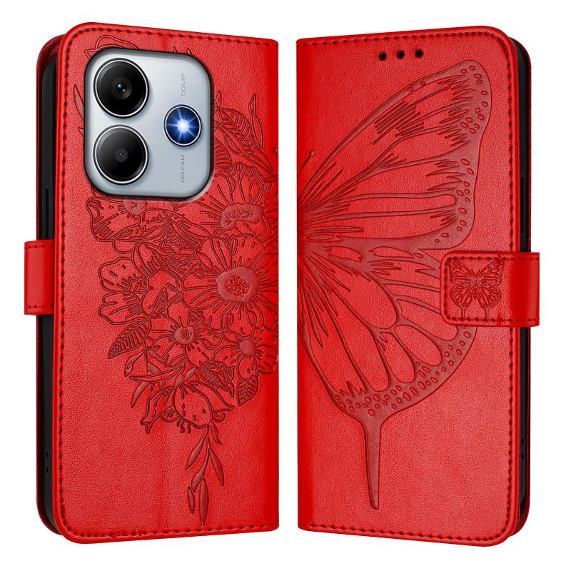 For Xiaomi Poco M7 Pro 5G Global Embossed Butterfly Leather Phone Case(Red)