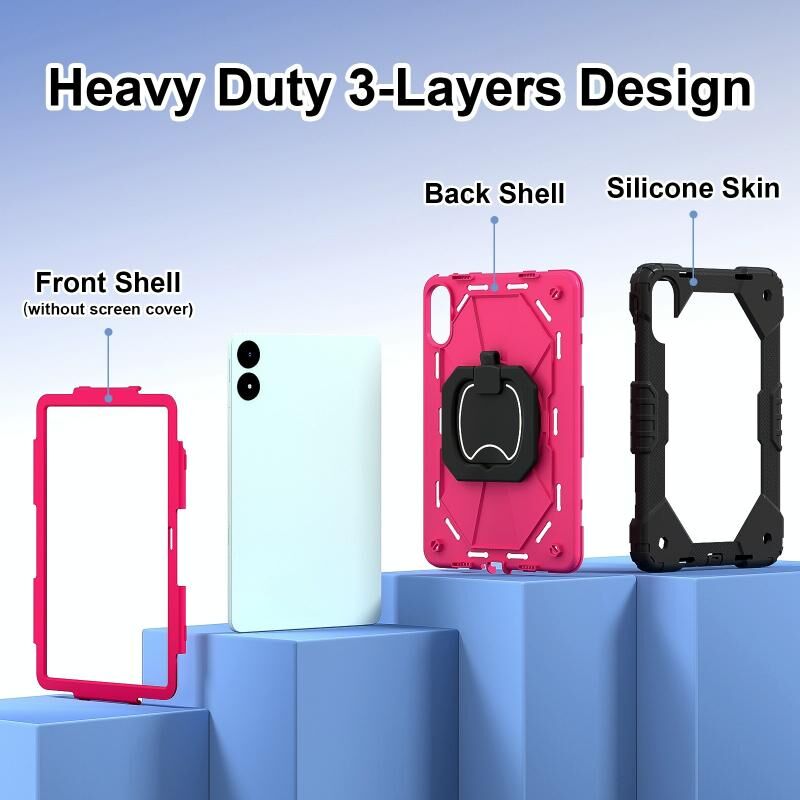 Για το Xiaomi Poco Pad 12.1 Contrast Color Robot Silicone Hybrid PC Tablet Case (Μαύρο Rose Red)