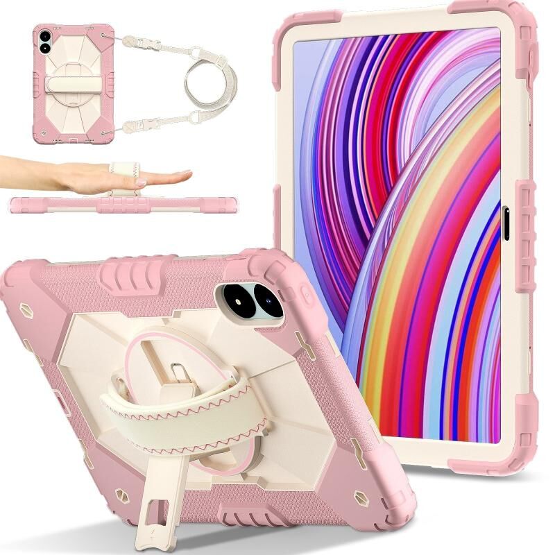 Για το Xiaomi Poco Pad 12.1 Contrast Color Robot Silicone Hybrid PC Tablet Case (Rose Gold Beige)