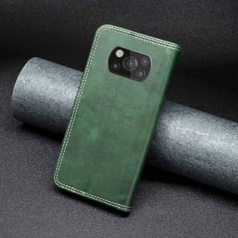 Θήκη τηλεφώνου δερμάτινη διπλής ραφής, χρωματικής αντιστοίχισης για Xiaomi Poco X3 (πράσινο)