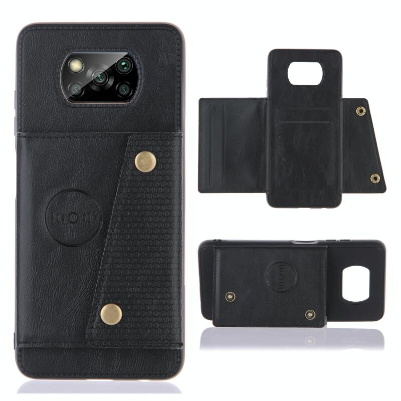Για Xiaomi Poco X3 Διπλή πόρπη PU + TPU Shockproof μαγνητική προστατευτική θήκη με υποδοχές καρτών & κάτοχος (μαύρο)