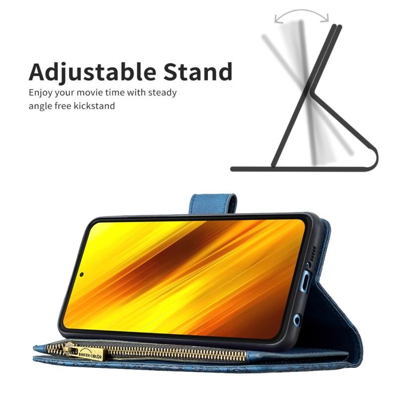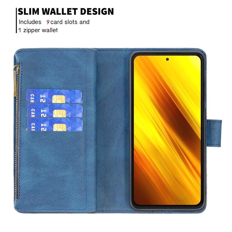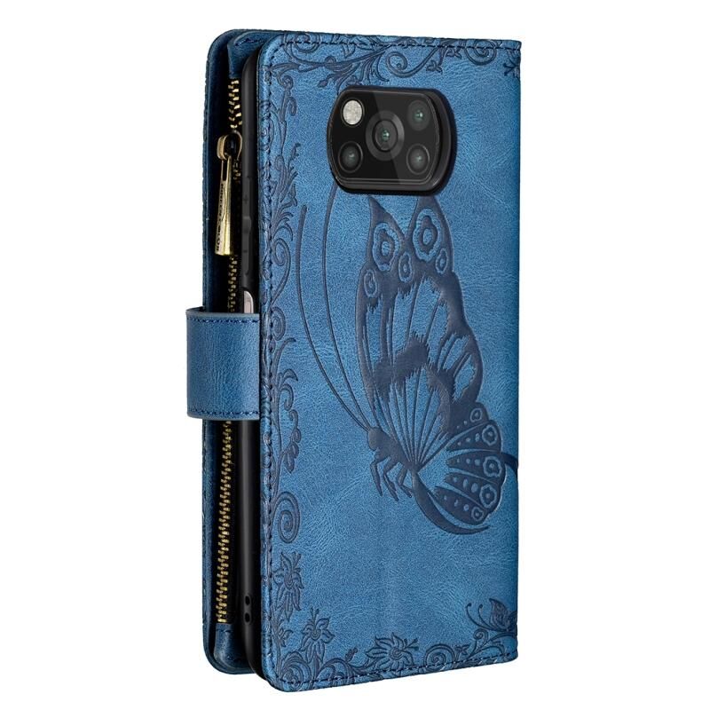 Για Xiaomi Poco X3 Flying πεταλούδα ανάγλυφο μοτίβο φερμουάρ οριζόντια Flip δερμάτινη θήκη με κάτοχο & υποδοχές καρτών & πορτοφόλι (μπλε)