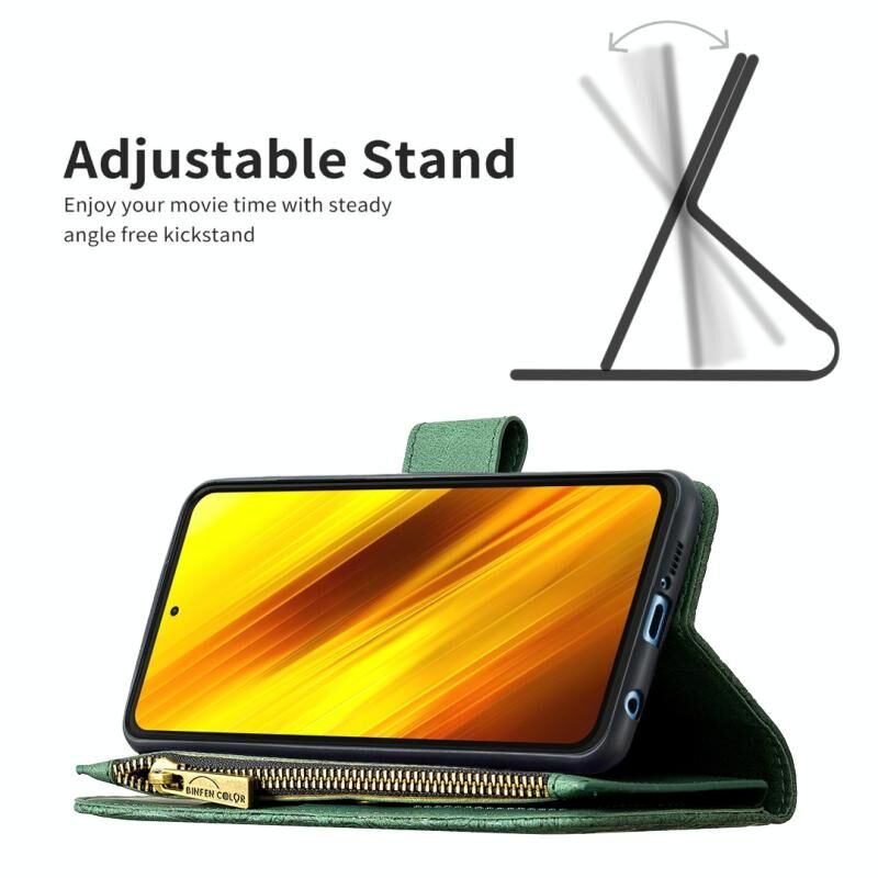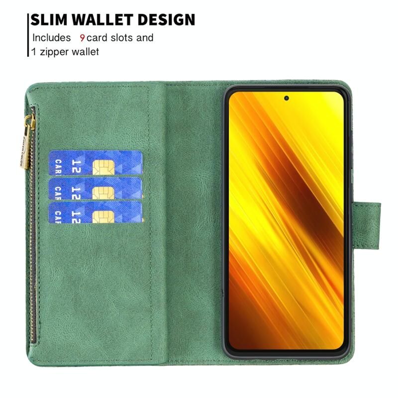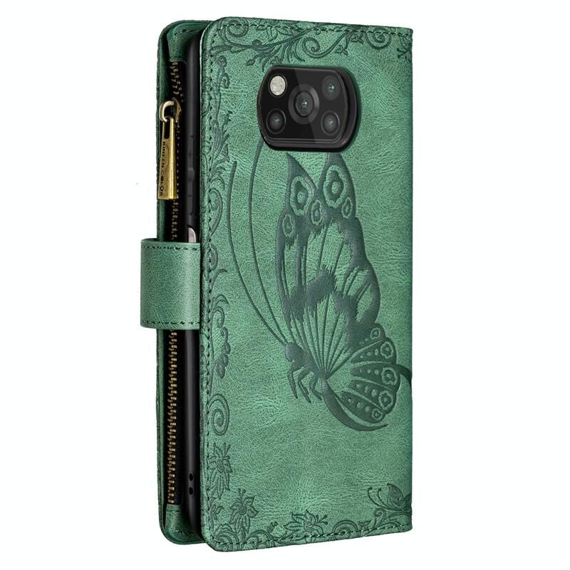 Για Xiaomi Poco X3 Πετώντας πεταλούδα ανάγλυφο μοτίβο φερμουάρ οριζόντια Flip δερμάτινη θήκη με κάτοχο & υποδοχές καρτών & πορτοφόλι (πράσινο)