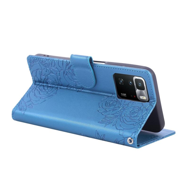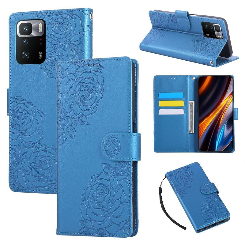 For Xiaomi Poco X3 GT Rose Flower Embossed 3-Card Slots Leather Phone Case(Blue)