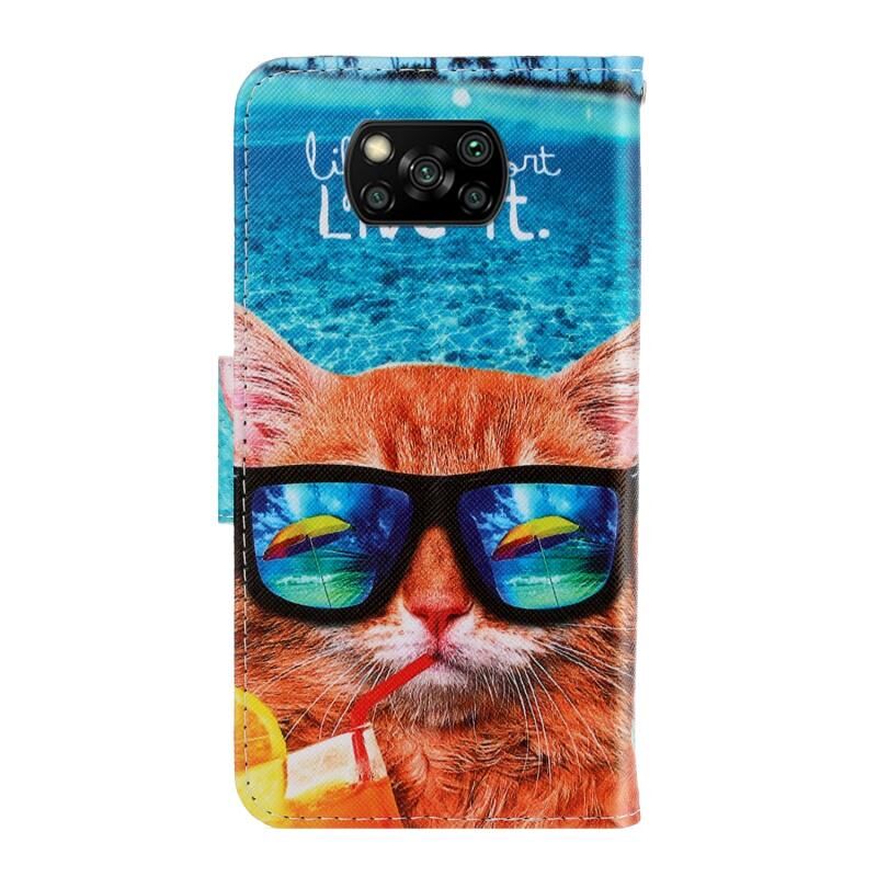 Θήκη τηλεφώνου από δέρμα με έγχρωμη τρισδιάστατη σχεδίαση για Xiaomi Poco X3 NFC (Γάτα κάτω από το νερό)