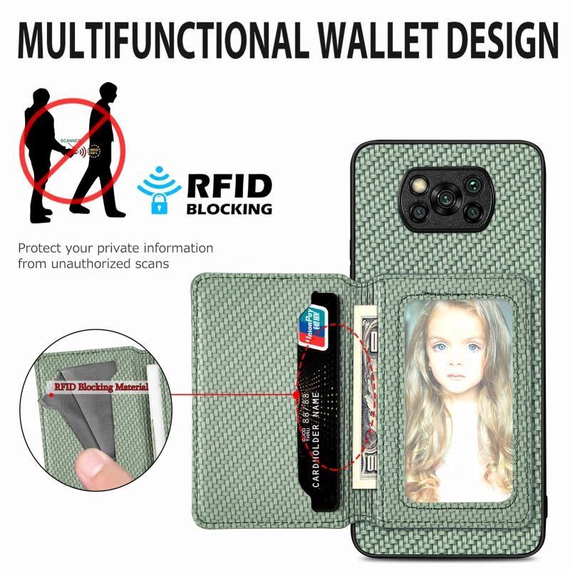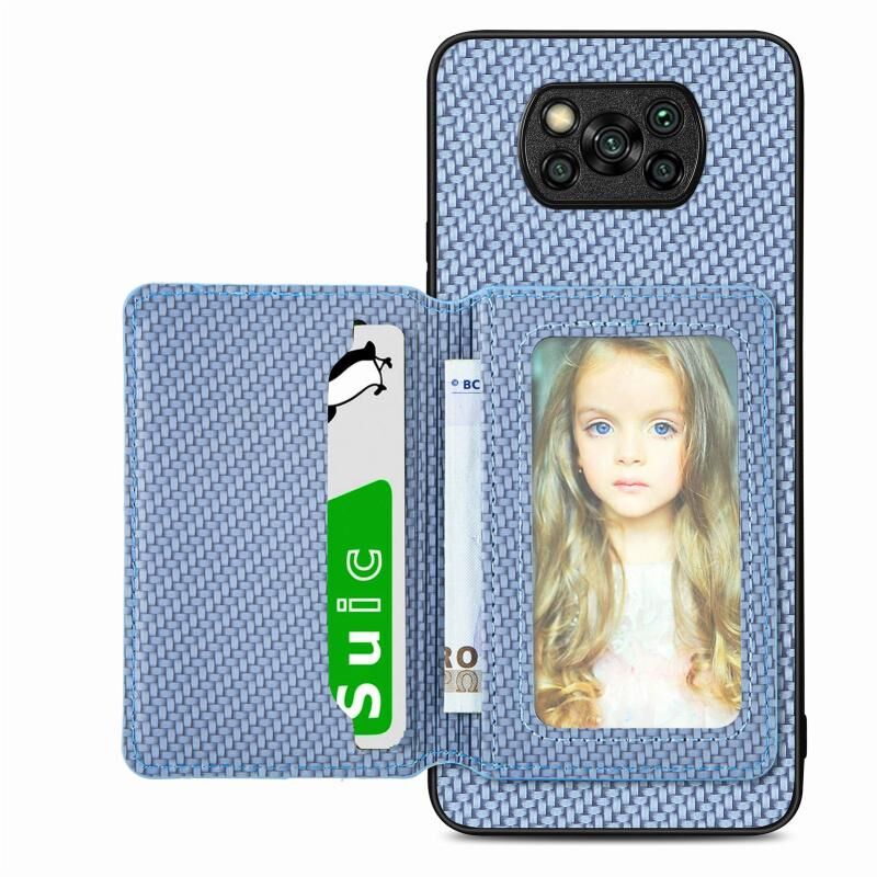 Για Xiaomi Poco X3 NFC Carbon Fiber μαγνητική κάρτα τσάντα υπόθεση τηλεφώνου (μπλε)