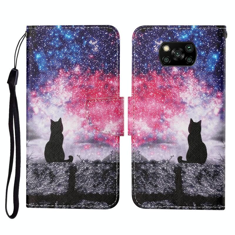 Θήκη δέρματος οριζόντιας αναδίπλωσης με σχέδια και χρώματα για Xiaomi Poco X3 NFC με βάση στήριξης, θήκες καρτών, πορτοφόλι και κορδόνι (Αστρόγατα)