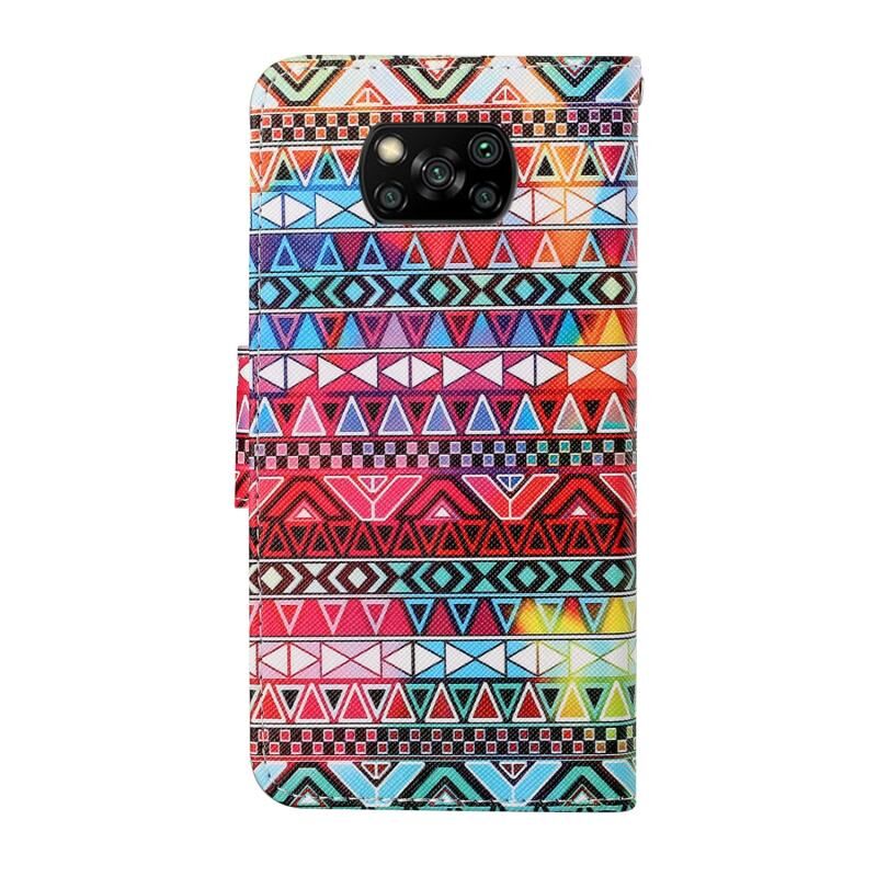 Θήκη δέρματος οριζόντιας αναδίπλωσης με σχέδια και χρώματα για Xiaomi Poco X3 NFC, με βάση στήριξης, θήκες για κάρτες, πορτοφόλι και κορδόνι (Εθνικό φυλετικό στυλ)