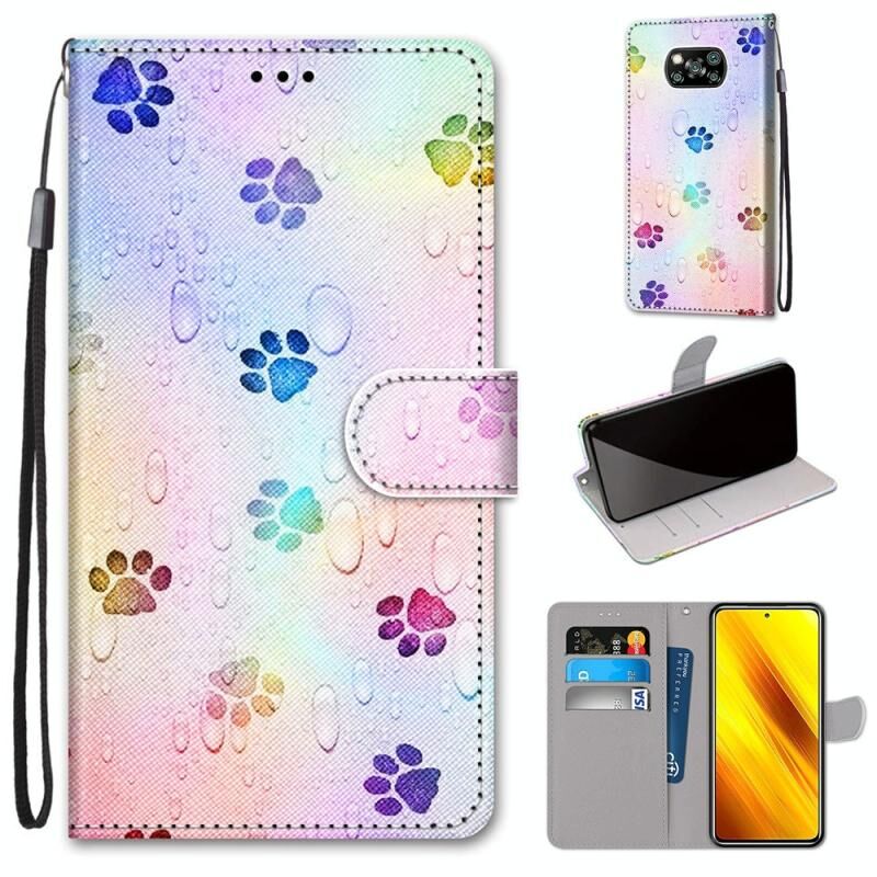 Θήκη για Xiaomi Poco X3 NFC με πολύχρωμο σχέδιο, υφή σταυρού, οριζόντια αναδίπλωση από δερματίνη PU με βάση στήριξης, θήκες για κάρτες, πορτοφόλι & λουρί (Αποτύπωμα, Σταγόνες Νερού)