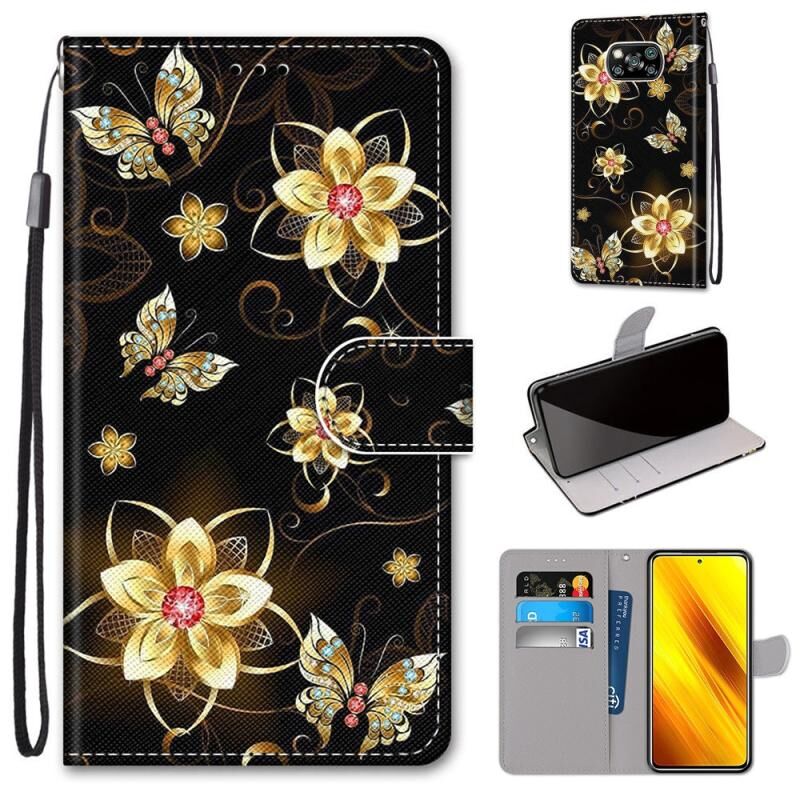 Θήκη για Xiaomi Poco X3 NFC με πολύχρωμο σχέδιο, υφή σταυρού, οριζόντια αναδίπλωση από δερματίνη PU με βάση στήριξης & θήκες για κάρτες & πορτοφόλι & κορδόνι (Ροζ Λουλούδι, Γέφυρα του Πύργου). (Χρυσή Πεταλούδα Διαμάντι)
