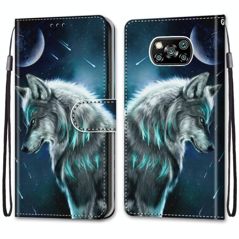 Θήκη για Xiaomi Poco X3 NFC με πολύχρωμο σχέδιο, υφή σταυρού, οριζόντια αναδίπλωση από δερματίνη PU με βάση στήριξης & θήκες για κάρτες & πορτοφόλι & κορδόνι (Κόκκινο)