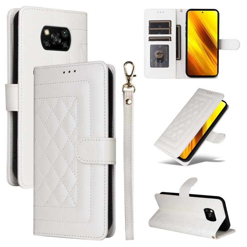 Για Xiaomi Poco X3 NFC Diamond Lattice δέρμα Flip υπόθεση τηλεφώνου (λευκό)