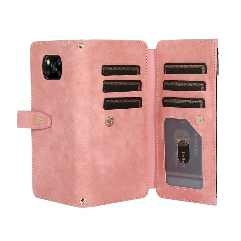 Για Xiaomi Poco X3 NFC Dream 9-κάρτα πορτοφόλι φερμουάρ τσάντα δερμάτινη θήκη τηλεφώνου (ροζ)
