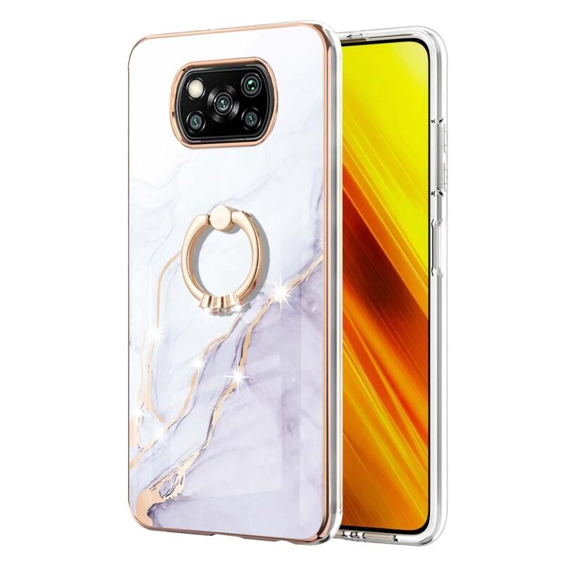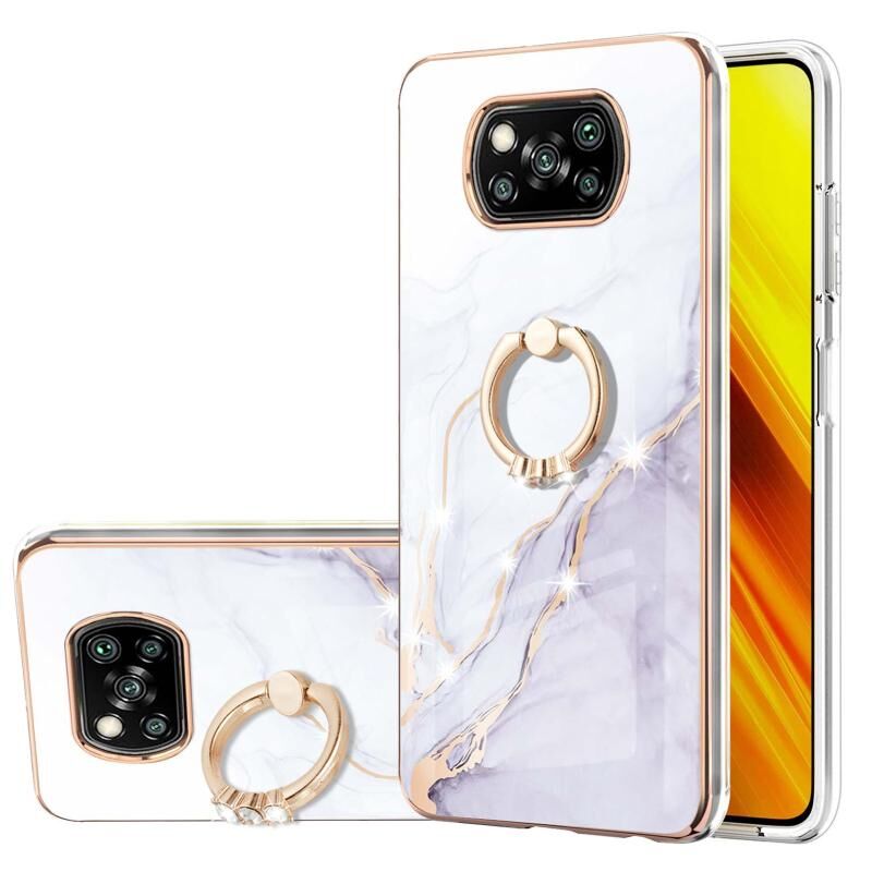 Θήκη για Xiaomi Poco X3 NFC με Γαλβανισμό, Μοτίβο Μαρμάρου IMD, Αντικραδασμική από TPU με Δακτύλιο Στήριξης (Λευκό 006)