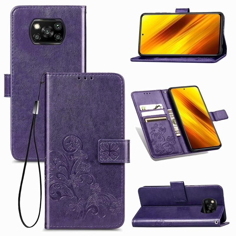 Για Xiaomi Poco X3 NFC Θήκη Προστασίας Κινητού Δέρμα με Κούμπωμα Τριφύλλι, Λουράκι, Θήκη Καρτών, Πορτοφόλι & Λειτουργία Στήριξης (Μωβ)