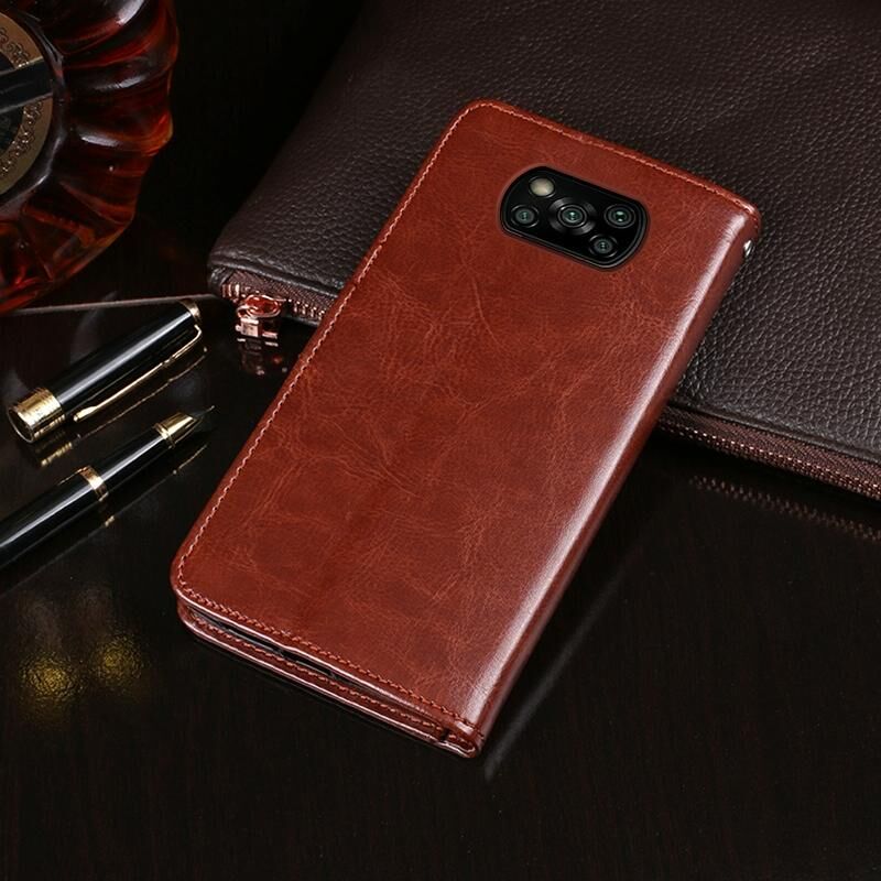 Για Xiaomi Poco X3 NFC idewei Δερμάτινη θήκη με υφή Crazy Horse, οριζόντια αναδίπλωση με βάση & υποδοχές καρτών & πορτοφόλι (Μαύρο) (idewei)