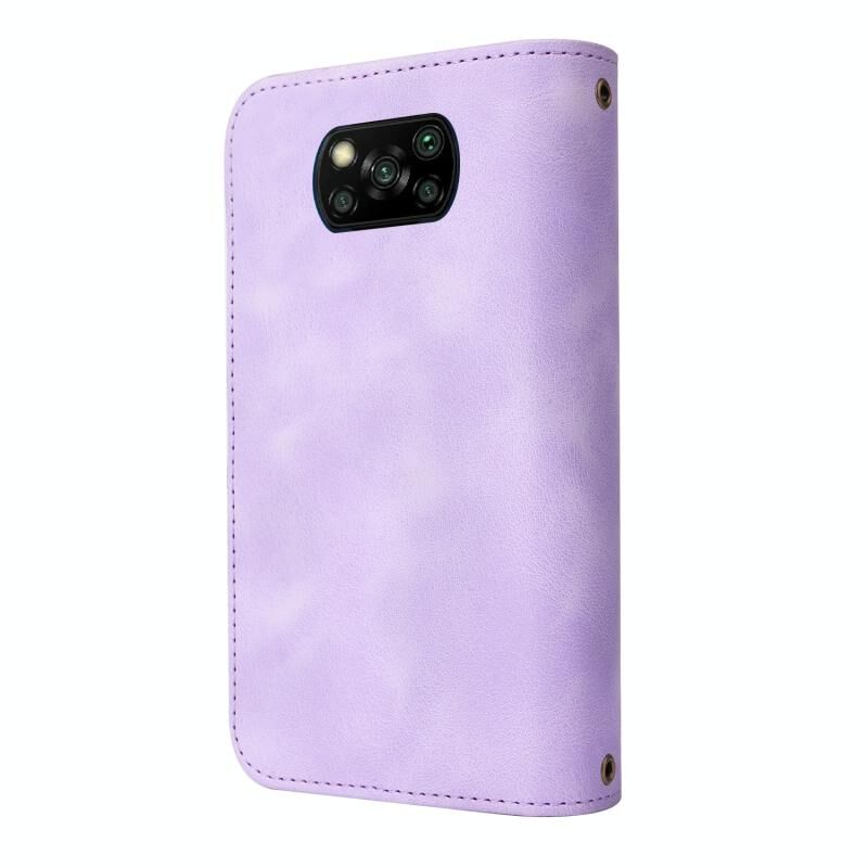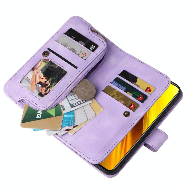 Για Xiaomi Poco X3 NFC πολυλειτουργική κάρτα Slot φερμουάρ πορτοφόλι δερμάτινη θήκη τηλεφώνου (μωβ)