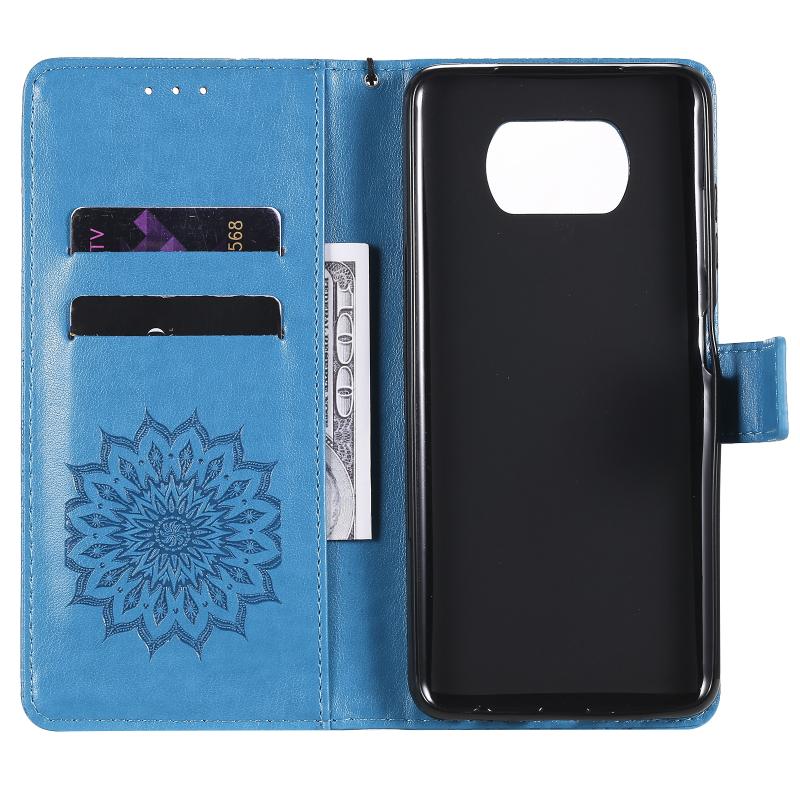 Θήκη για Xiaomi Poco X3 NFC, με εκτύπωση λουλουδιών ηλιοτρόπιου, οριζόντια αναδιπλούμενη από δερματίνη PU, με βάση στήριξης, θήκες για κάρτες, πορτοφόλι & κορδόνι (Χρυσό Ρόδινο).