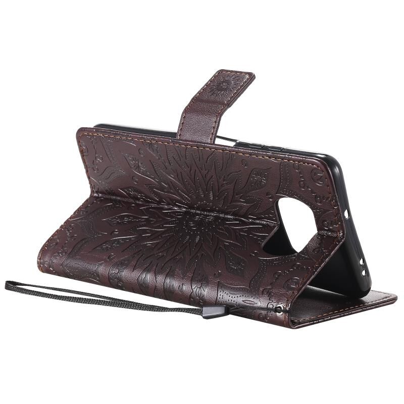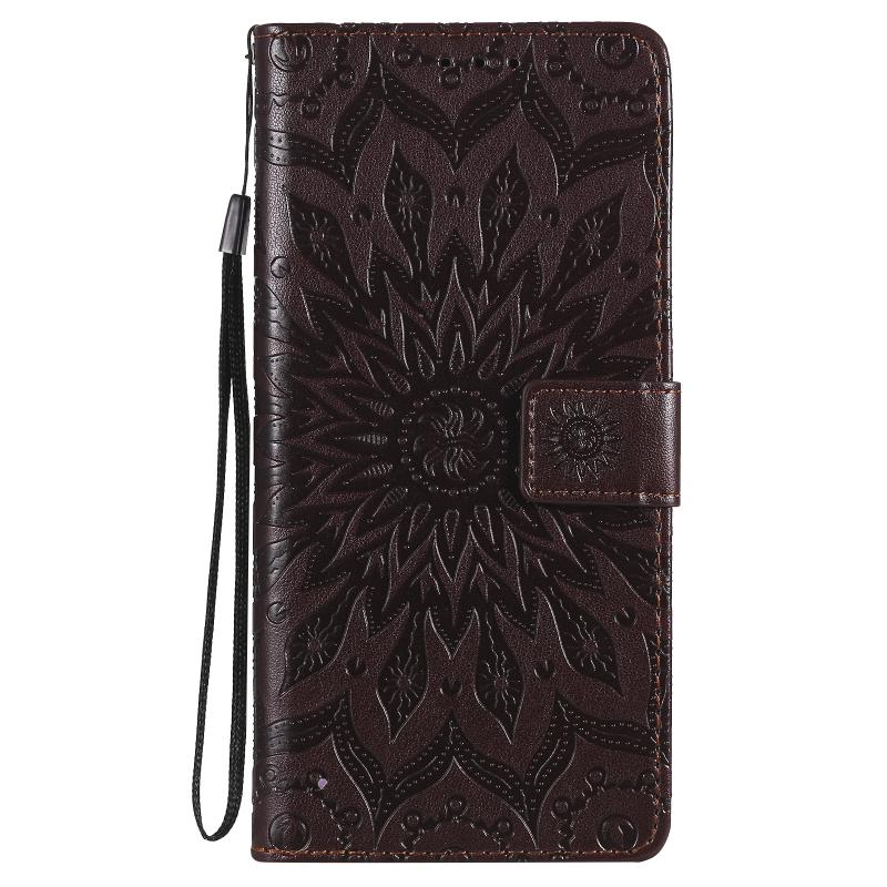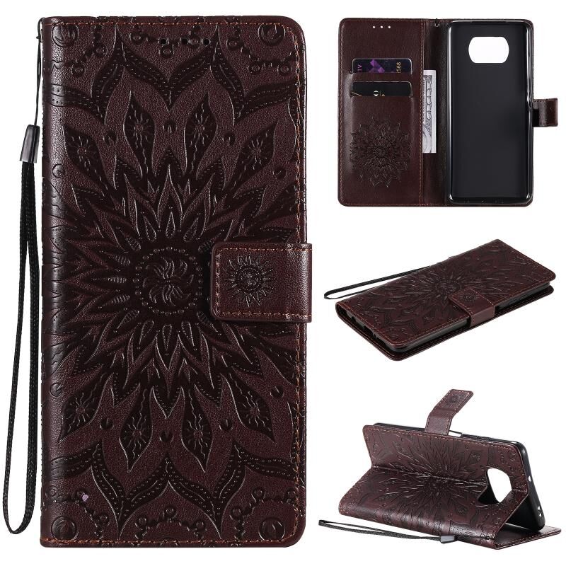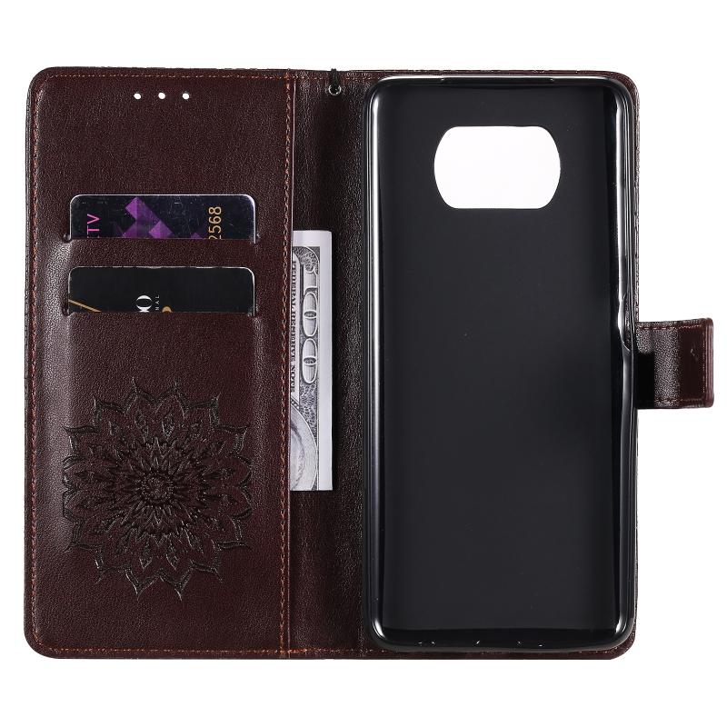 For Xiaomi Poco X3 NFC Pressed Printing Sunflower Pattern Horizontal Flip PU Leather Case with Holder & Card Slots & Wallet & Lanyard(Brown)