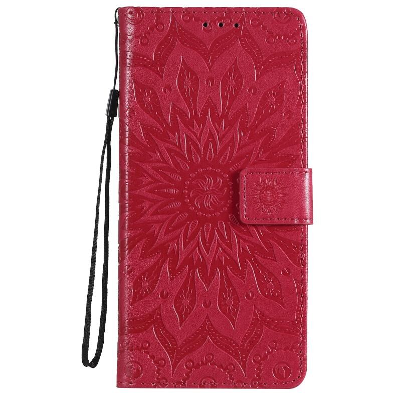 For Xiaomi Poco X3 NFC Pressed Printing Sunflower Pattern Horizontal Flip PU Leather Case with Holder & Card Slots & Wallet & Lanyard(Red)