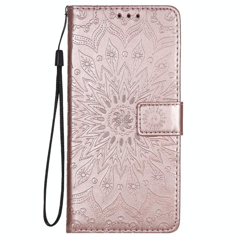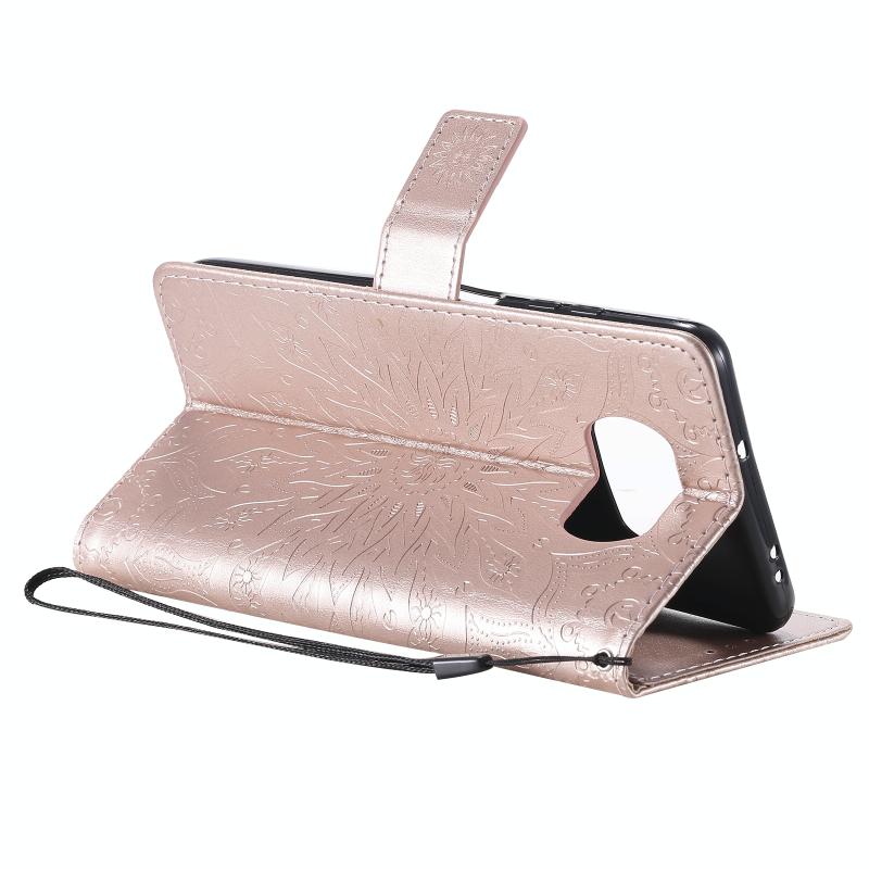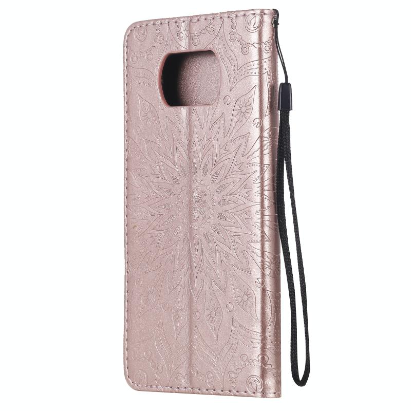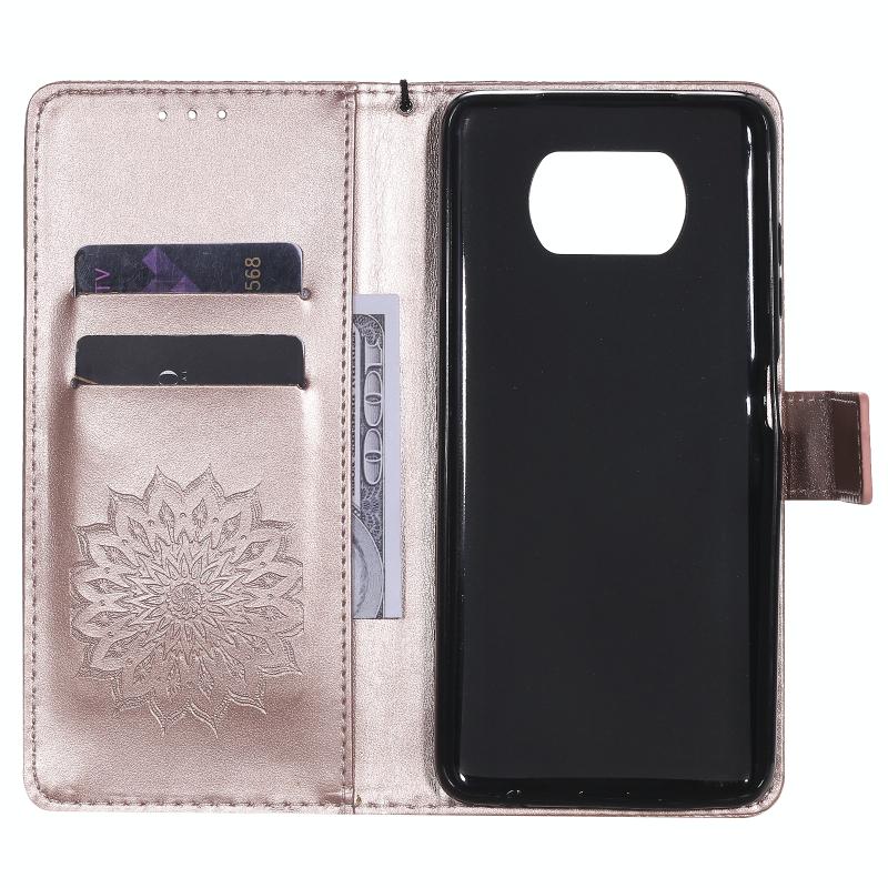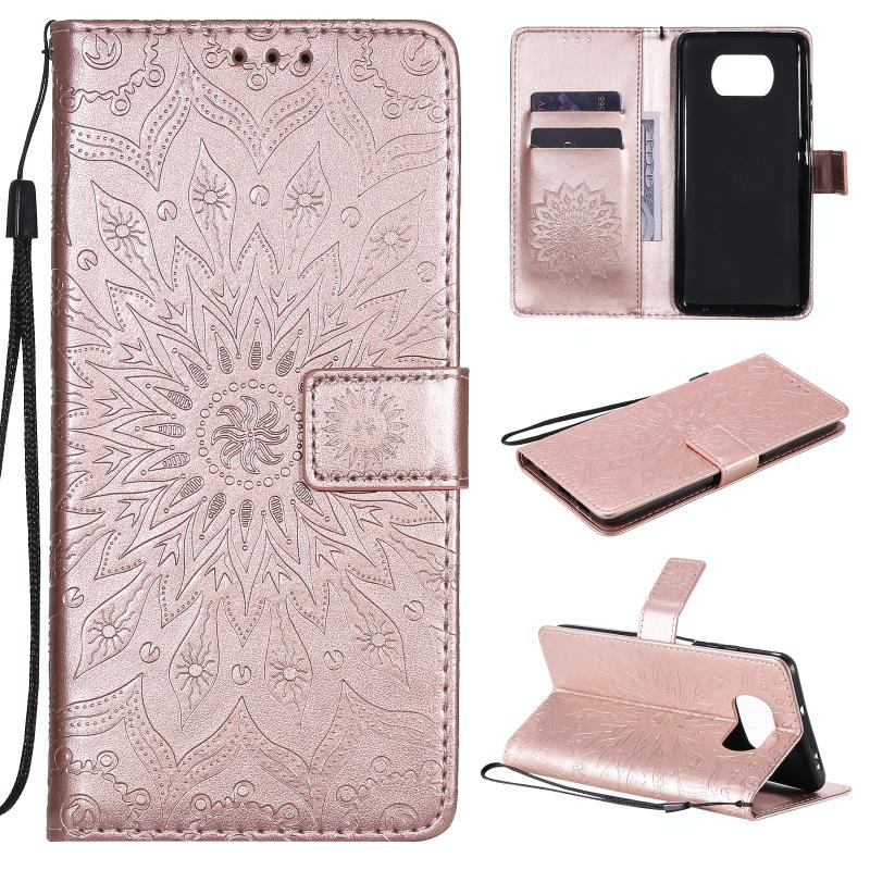 For Xiaomi Poco X3 NFC Pressed Printing Sunflower Pattern Horizontal Flip PU Leather Case with Holder & Card Slots & Wallet & Lanyard(Rose Gold)