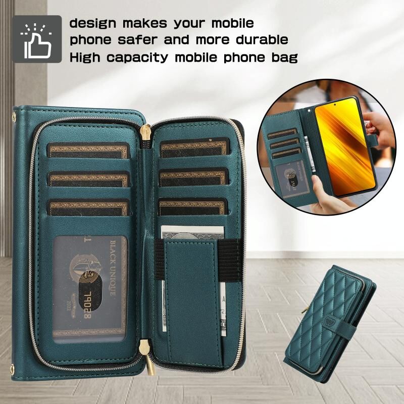 Για Xiaomi Poco X3 NFC Rhombic Πλήρης φερμουάρ πορτοφόλι δερμάτινη θήκη τηλεφώνου (πράσινο)