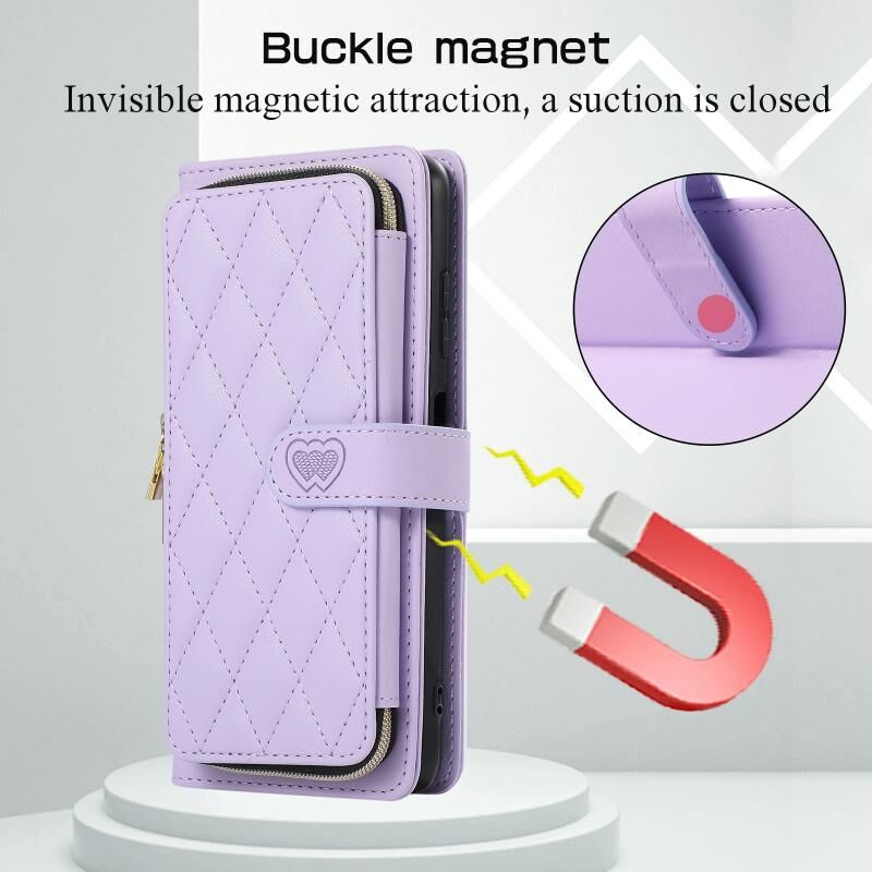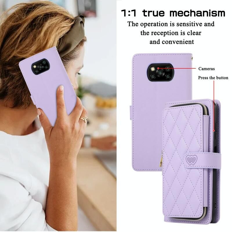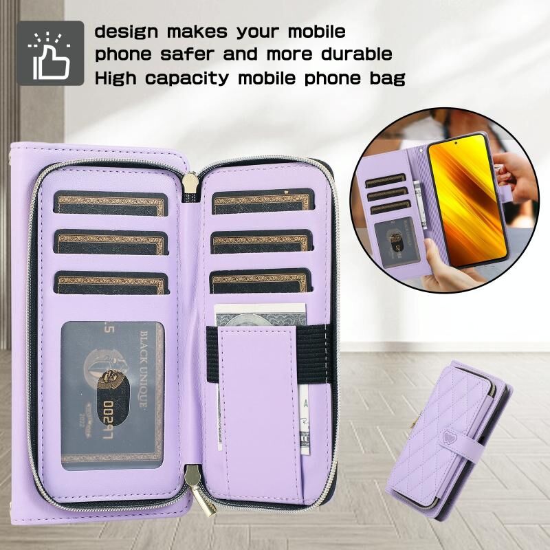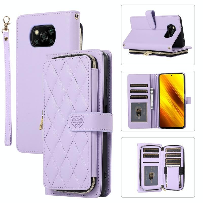 Για Xiaomi Poco X3 NFC Rhombic Πλήρης φερμουάρ πορτοφόλι δερμάτινη θήκη τηλεφώνου (μωβ)