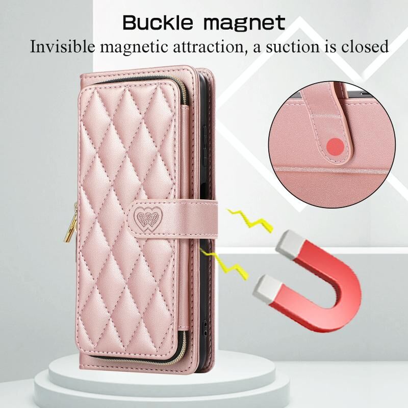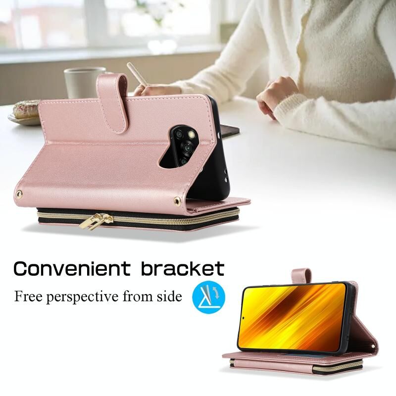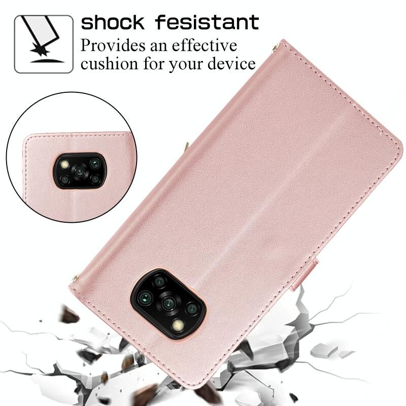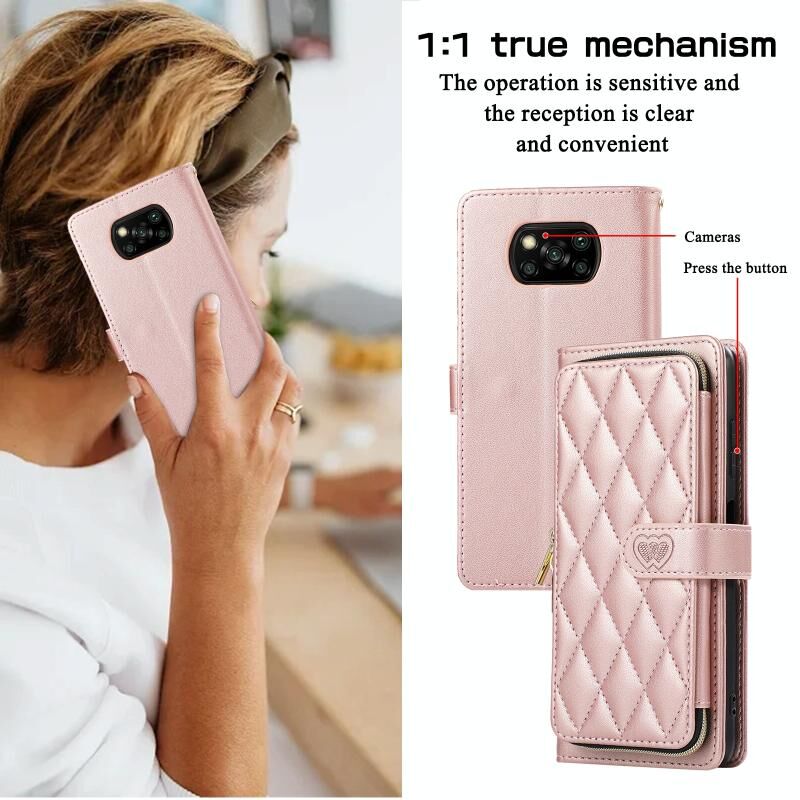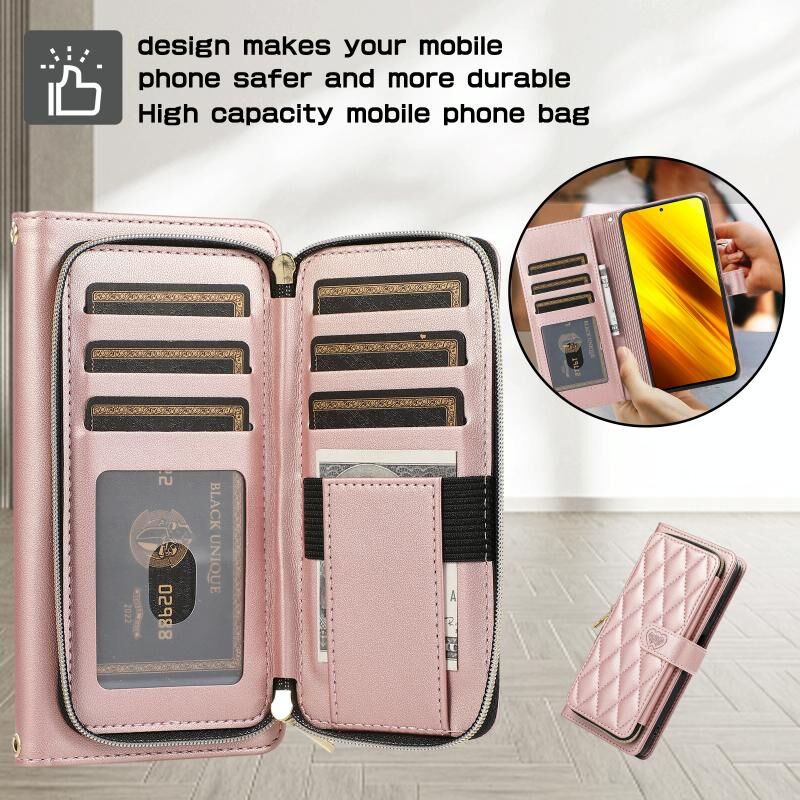 Για Xiaomi Poco X3 NFC Rhombic Πλήρης φερμουάρ πορτοφόλι δερμάτινη θήκη τηλεφώνου (Rose Gold)