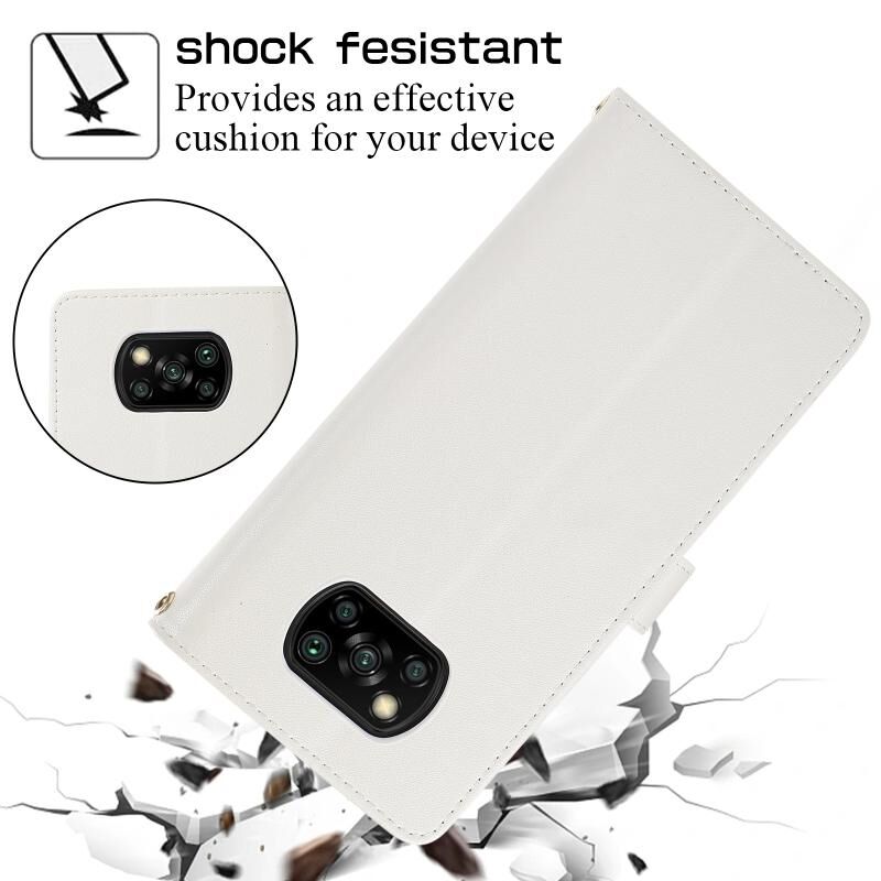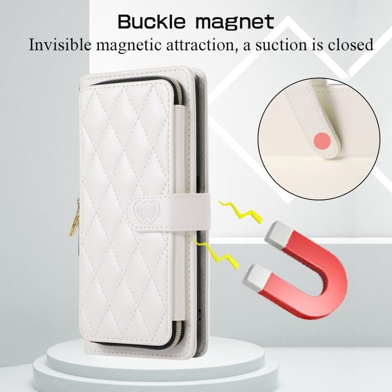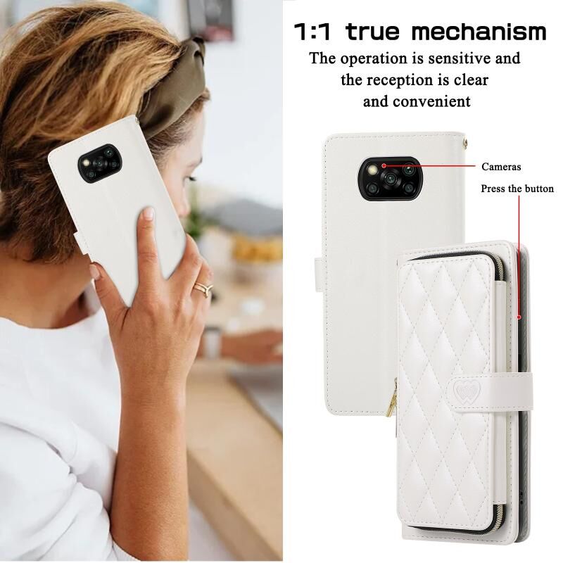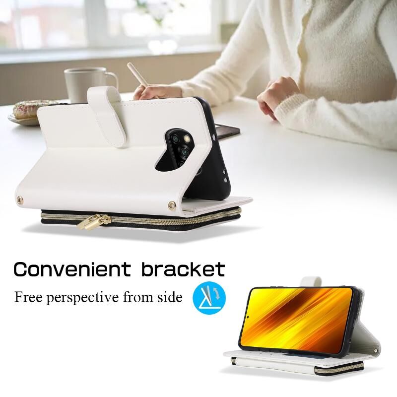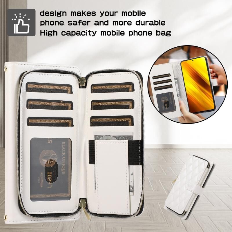 Για Xiaomi Poco X3 NFC Rhombic πλήρη φερμουάρ πορτοφόλι δερμάτινη θήκη τηλεφώνου (Λευκό)