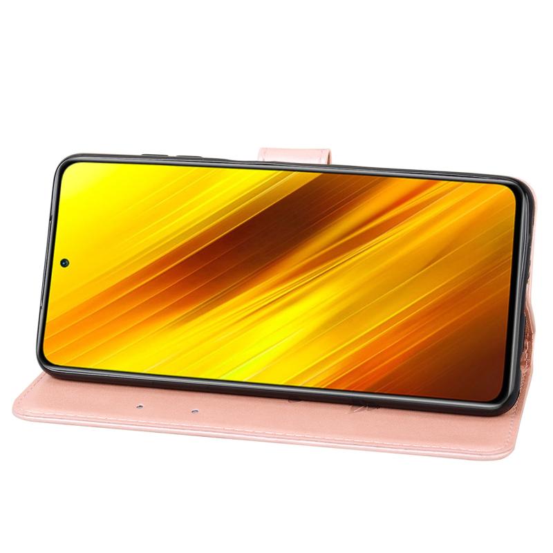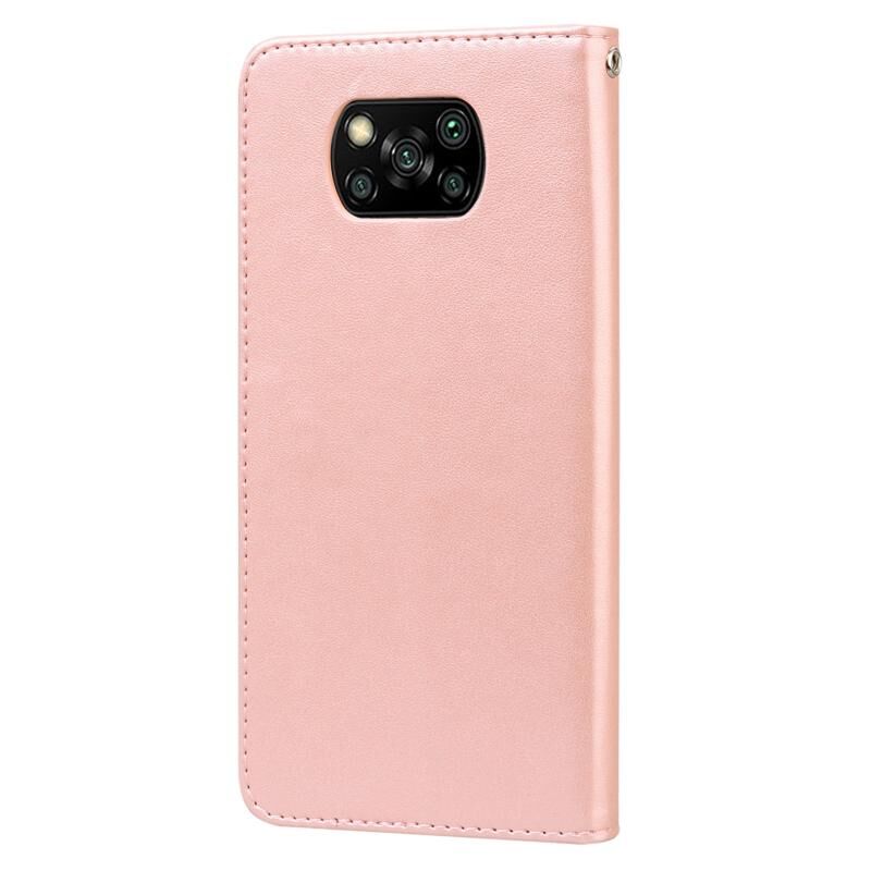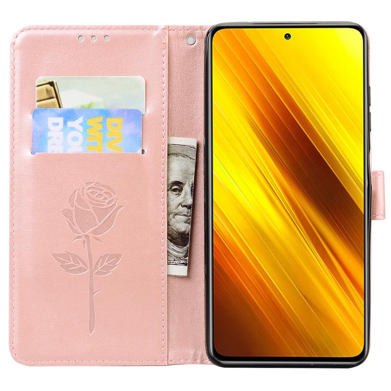 Θήκη για Xiaomi Poco X3 NFC Rose Embossed, οριζόντια, από δερματίνη PU με βάση στήριξης & θήκες για κάρτες & πορτοφόλι (Ροζ χρυσός)