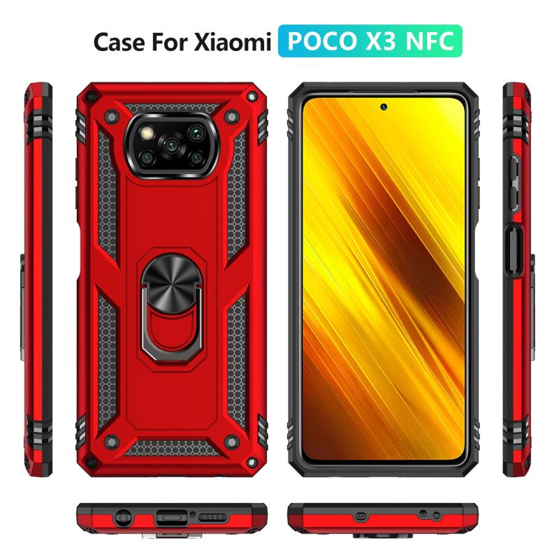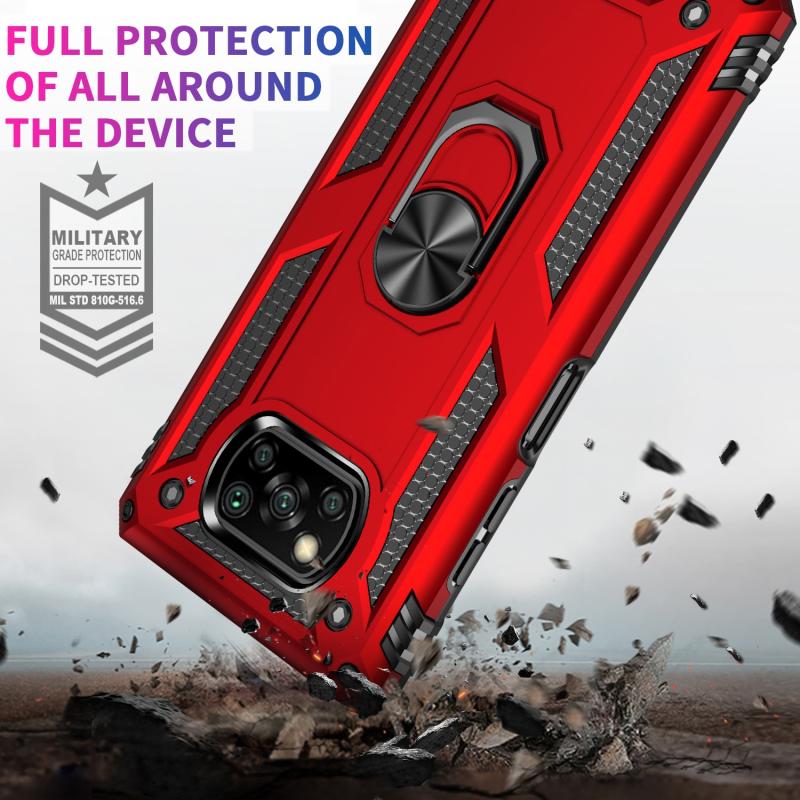 For Xiaomi Poco X3 NFC Shockproof TPU + PC Protective Case with 360 Degree Rotating Holder(Red)