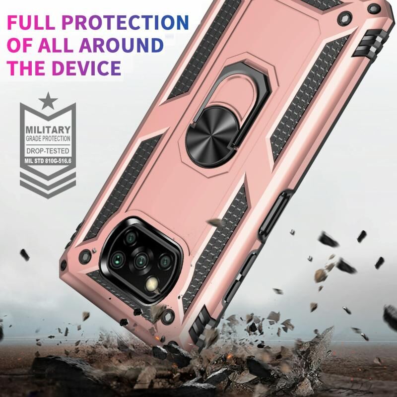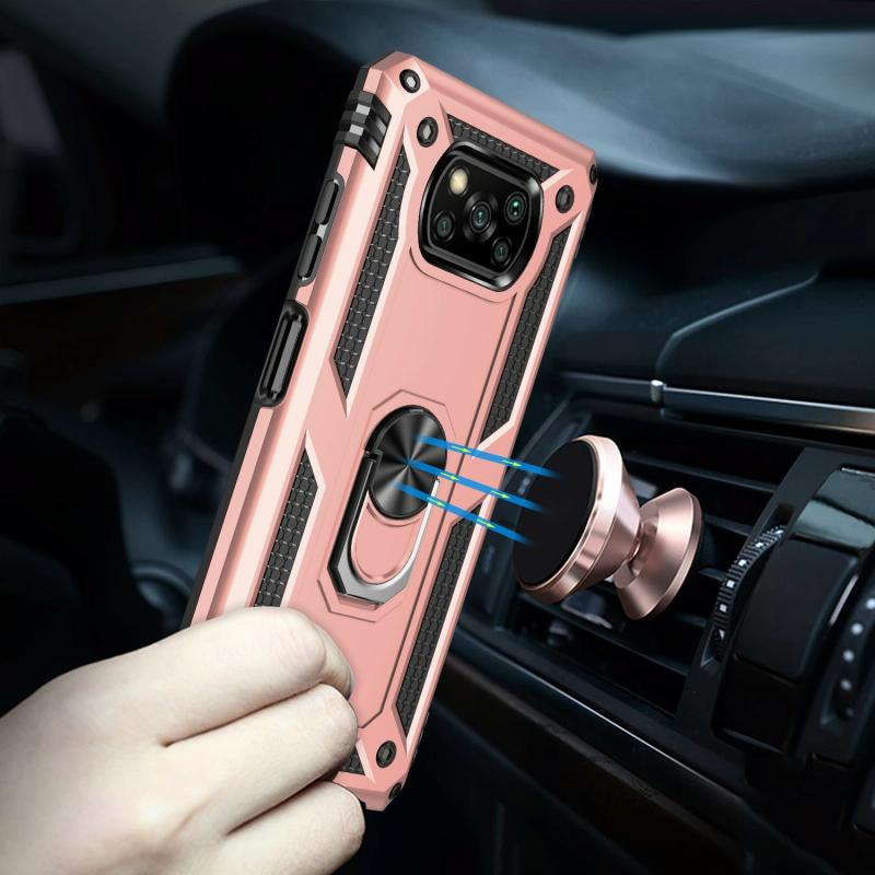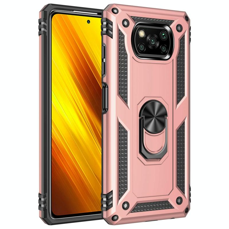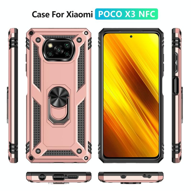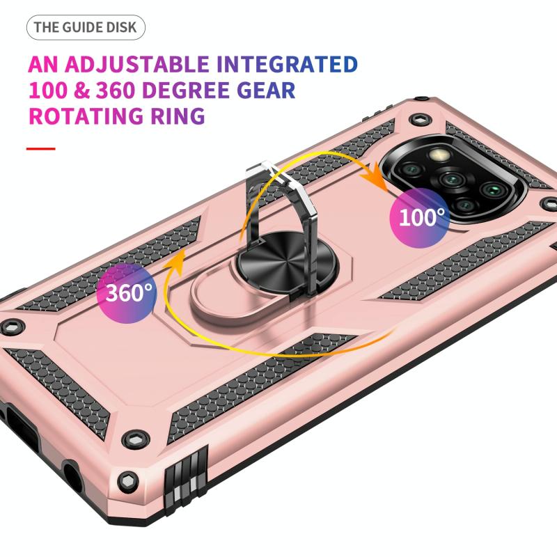 For Xiaomi Poco X3 NFC Shockproof TPU + PC Protective Case with 360 Degree Rotating Holder(Rose Gold)