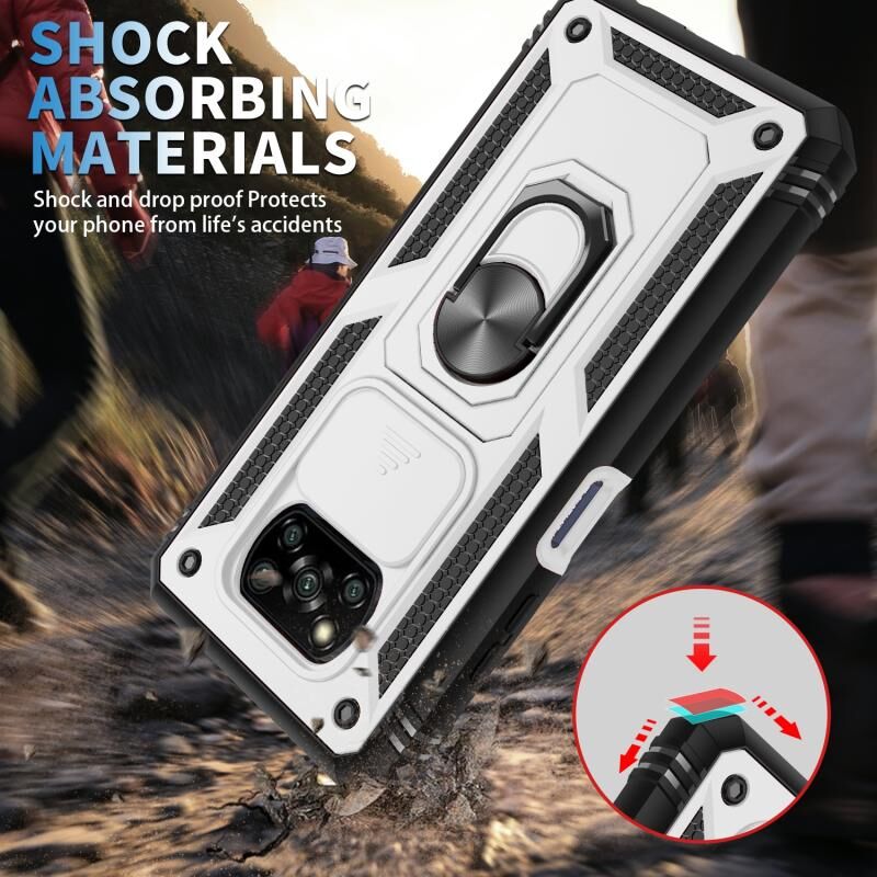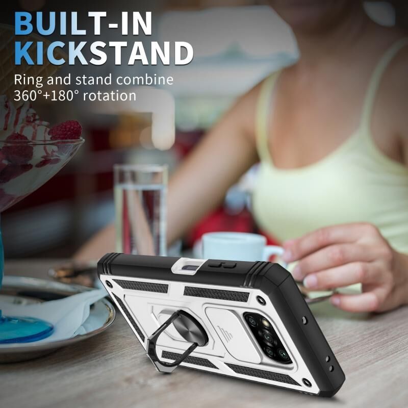 Θήκη τηλεφώνου για Xiaomi Poco X3 NFC με ολισθαίνουσα κάλυψη κάμερας, TPU + PC (Λευκό+Μαύρο)