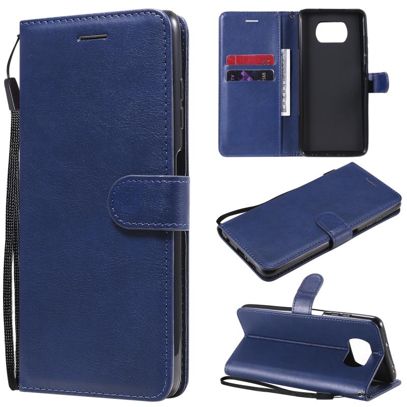 Θήκη δέρματος οριζόντιας αναδίπλωσης για Xiaomi Poco X3 NFC, μονόχρωμη, με βάση στήριξης, θήκες καρτών, πορτοφόλι, κορνίζα φωτογραφιών και κορδόνι (Χρυσό Ρόδι)