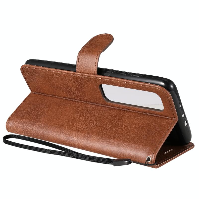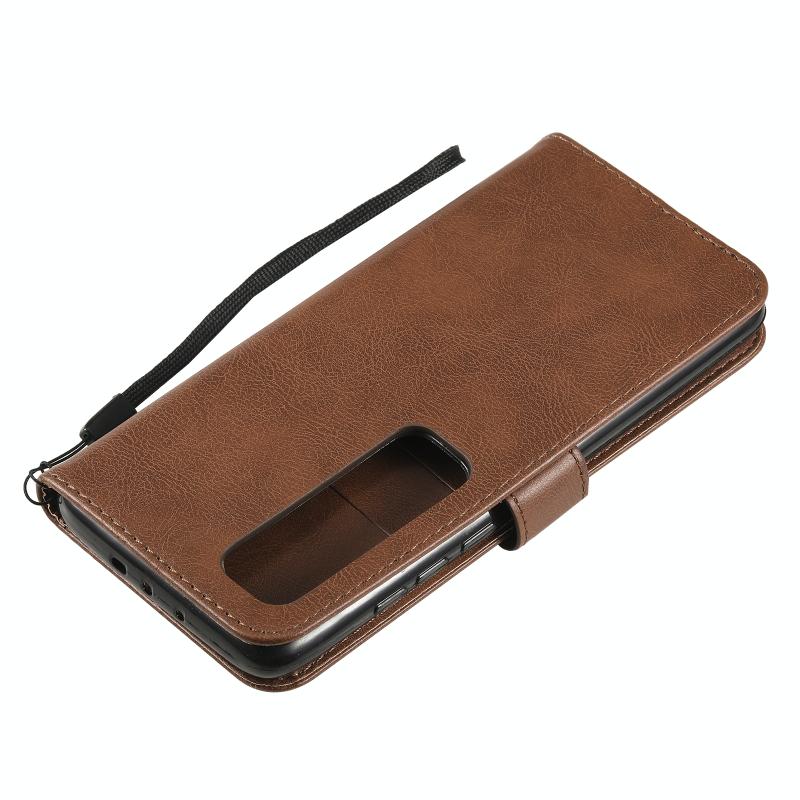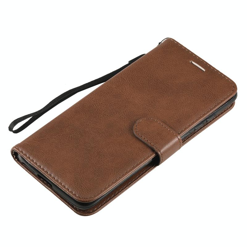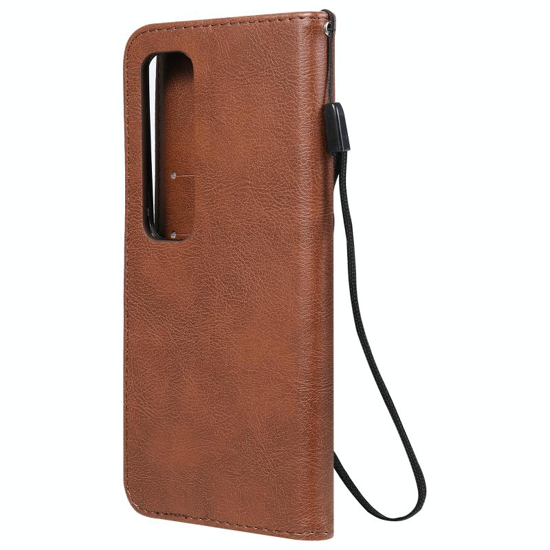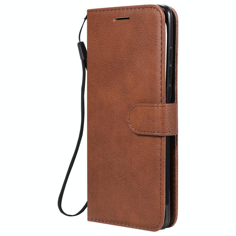 Θήκη δέρματος οριζόντιας αναδίπλωσης για Xiaomi Poco X3 NFC, μονόχρωμη, με βάση στήριξης, θήκες καρτών, πορτοφόλι, κορνίζα φωτογραφιών και κορδόνι (Καφέ)