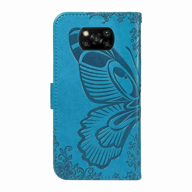 Θήκη τηλεφώνου δερμάτινη με ανάγλυφο σχέδιο πεταλούδας για Xiaomi Poco X3 NFC (Μπλε)